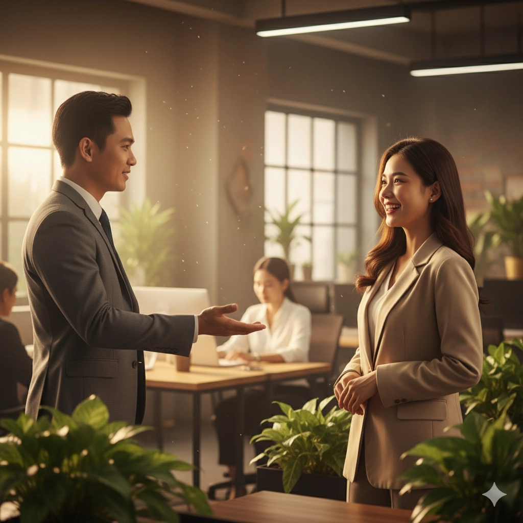 - [ ] Dẫn đi một vòng văn phòng, giới thiệu các khu vực quan trọng (pantry, phòng họp, toilet…).